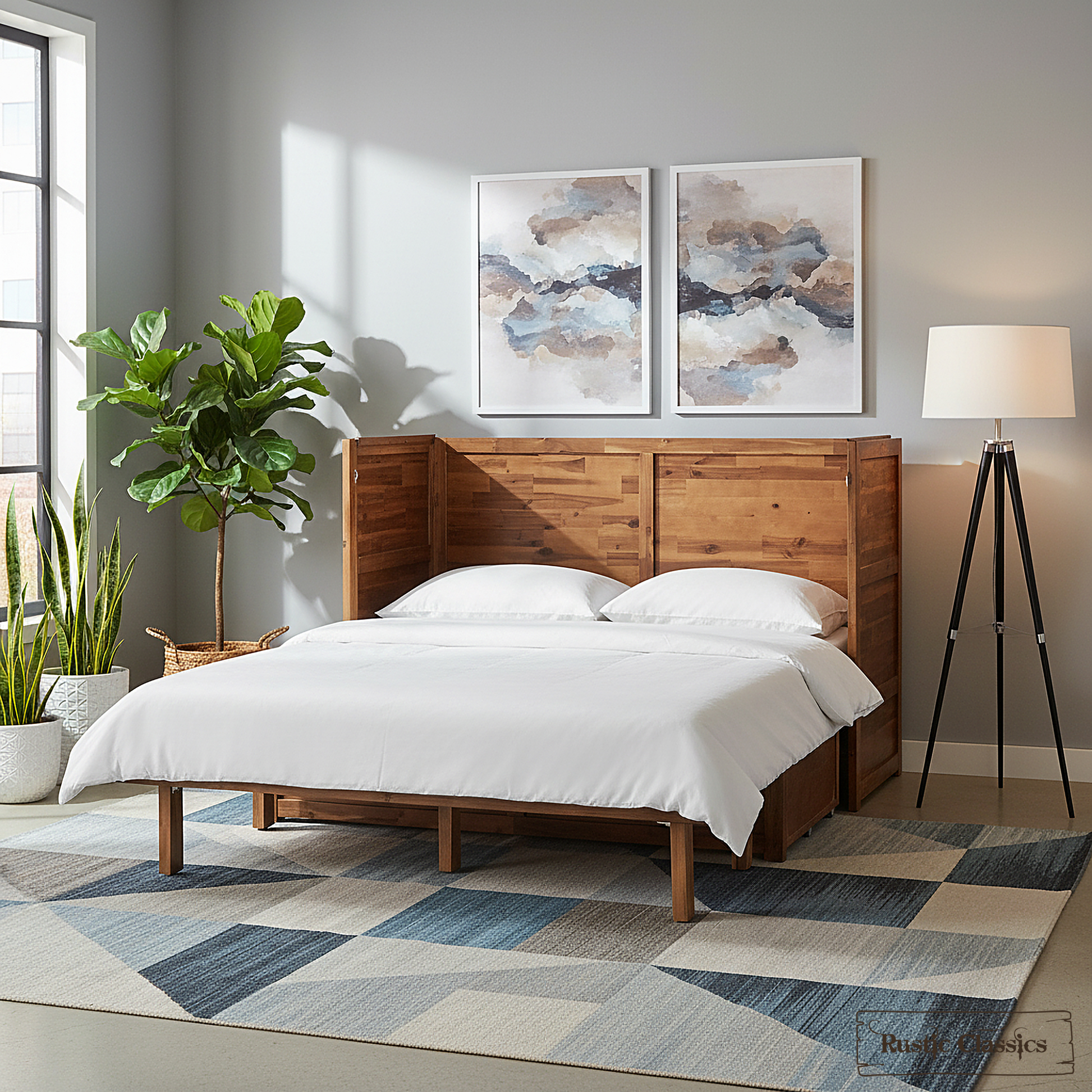 All Rustic Classics Murphy Cabinet Beds are guaranteed with a limited 1 year warranty for factory defects in the cabinet and a limited 3 year warranty in the mattress, this does not cover fading or wear of fabrics and wood, softening mattress, or natural markings.
